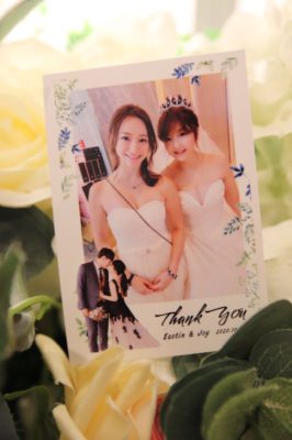 宴客當天,賓客們都玩得很盡興,配合道具瘋狂印照片,雖然列印數目超量,但超給力的協助將所的照片全數列印完畢,最後離場時竟然還收到貼心小禮物,裡面全是協助整場宴客紀錄與寫有賓客祝福的照片,贈送給新人。對於婚禮當日已忙到失智+餓到頭暈的新郎&新娘最大的祝福,【拍拍印】謝謝你們,留給我們人生重要階段回憶紀錄的活動好幫手!