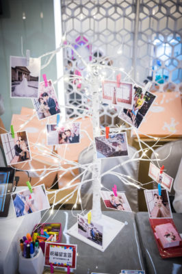宴客當天拍拍印在禮金桌旁邊,還用小樹裝飾的很美,把我們的婚紗照洗出掛上。