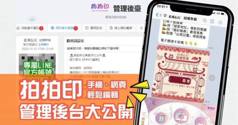 以上就是「拍拍印 – 最強活動拍貼系統」及網頁管理後臺簡單開箱介紹啦,簡單來說就是一站式的溝通平台,整合:賓客問卷、電子婚紗、宴客餐廳地址、宴客互動遊戲、相片拍貼機 4 合 1 大平台!非常期待婚禮活動當天的到來,到時候再將實際體驗跟大家分享。