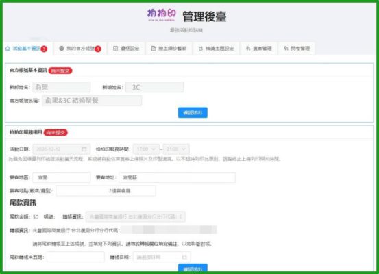 頁面相當簡當,上面有很多頁籤,在「活動基本資訊」這個頁籤能清楚看到官方帳號的「名稱」之外,還有租賃服務的合約、款項、服務地點等細節內容,非常清楚明瞭,就像合約一樣!
