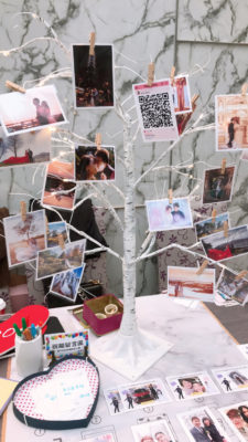 婚禮活動使用拍拍印拍貼機,早上11點左右廠商就來現場定位,幫我們佈置好現場,我們選用白色的機台,搭配白色樹掛上照片超美很有質感,現場還有提供一些拍照道具,真的是可愛報表!!我們是在婚紗展訂購方案,因此有多贈送貓咪美光燈,看賓客拍得好開心,最後因為照片太多,我們還有加購機台😆😆