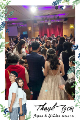 在一月三十一日, 我們結婚了. 在結婚前好在找到拍拍印這個有趣的互動活動, 讓我們的婚禮增添色彩. 因為在午宴的關係, 早在10點多時拍拍印的工作人員早已就定位(真的好迅速), 也讓參加的賓客們在門口外聚集一圈哈哈. 準備進場前, 招待還提醒要開始囉, 要印照片等等在印哈哈. 不過因為拍拍印廠商的貼心, 在每桌都有擺放桌卡, 大夥可以掃QR code直接上傳照片. 在二進時期, 也舉辦了兩種抽獎活動, 球轉與拉霸遊戲, 系統真的很穩定唷.