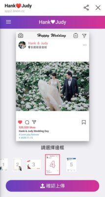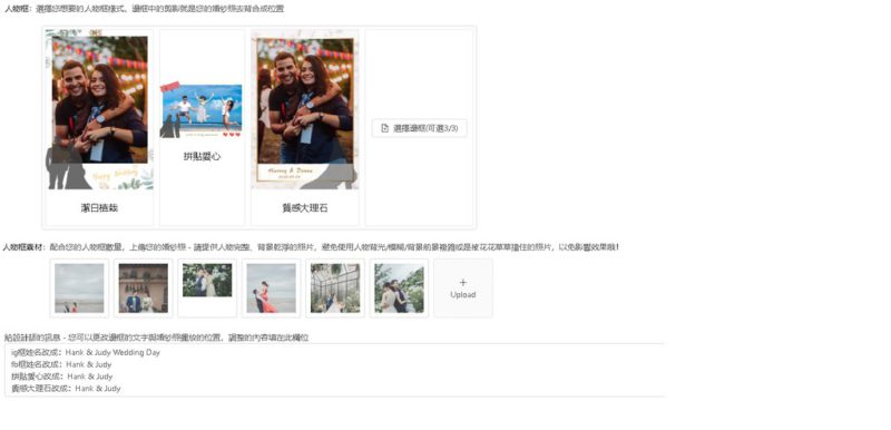 先上傳婚紗照並挑選喜歡的邊框款式,
