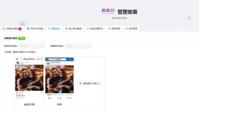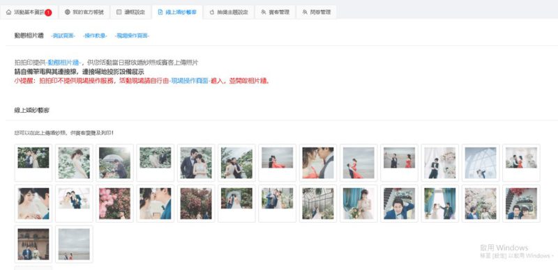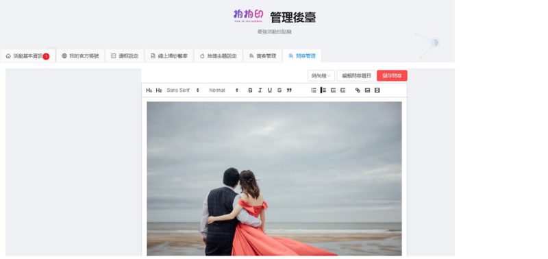 線上婚紗藝廊/抽獎主題設定/賓客管理/問卷管理