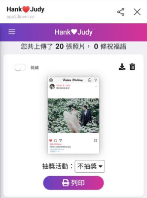 還有上傳照片現場印製、查看賓客相簿、列印狀態和參加抽獎的功能,