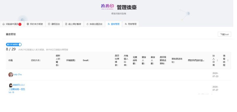 🔸出席回覆(線上填寫出席表單,可在後台看到回覆統計)