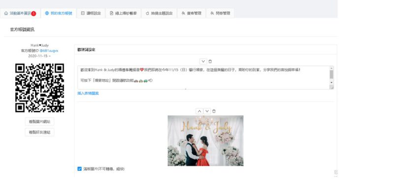 操作方式也很簡單,直接掃描QRcode就可以加入專屬你婚禮的官方帳號,