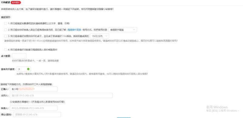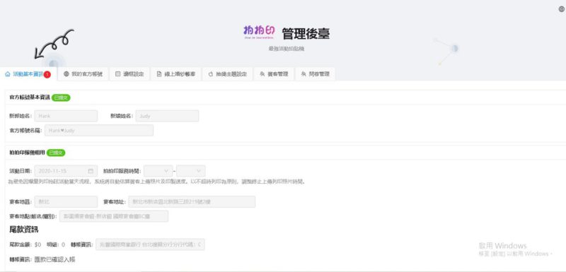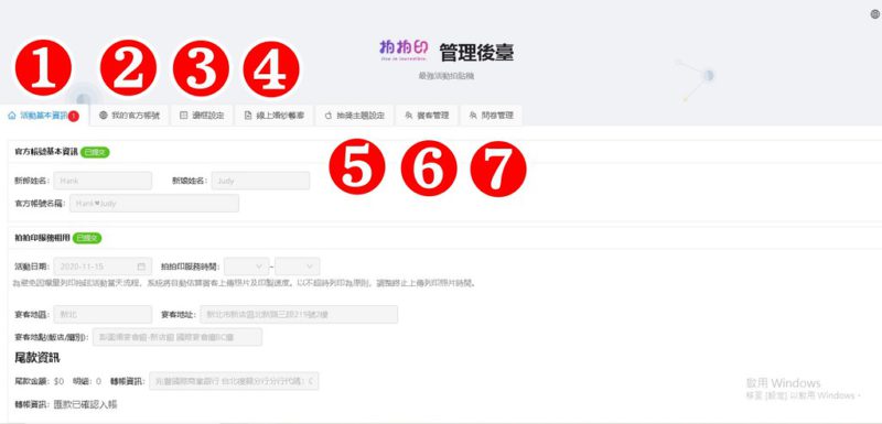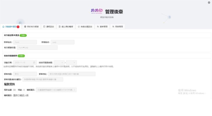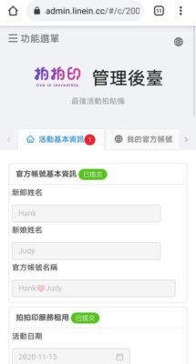 這邊主要是設定官方帳號基本資訊、拍拍印服務租用時間和行前確認,