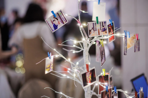 現場的場佈很美,工作人員也會鼓勵親友留言給我們,先生的姊姊也超喜歡拍拍印,印了一大堆。