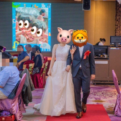 宴客現場,工作人員會先印一些我們的婚紗照,