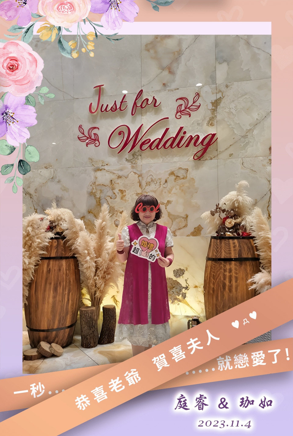 婚禮當天,利用賓客相簿就能夠在投影到大螢幕上,可以即時看到許多人上傳的照片及祝福,很精彩;另外,拍拍印提供的遊戲部分,不僅增添現場互動感,也拉近了我們與賓客間的距離!