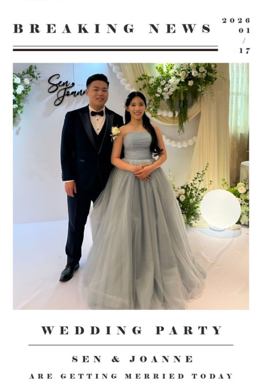 我最喜歡的是,賓客可以現場拍照、立刻拿到屬於自己的照片,而且照片上還有我們特別設計的邊框,結合了新人風格與婚禮主題,不只是「一張合照」,而是一份專屬紀念。很多朋友當下就說「這個我一定不會丟」,甚至有人直接放進皮夾或手機殼裡,那一刻真的很感動。