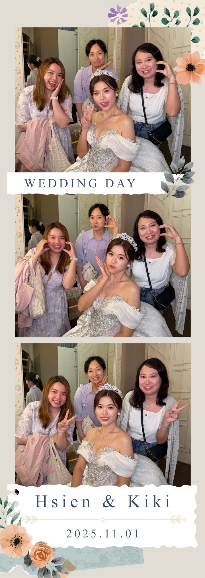 後來想到每次和閨蜜們聚會,大家都超愛拍照~於是靈機一動:婚禮上一定要有拍貼機!最好還能修圖,讓賓客都能拍出好看又滿意的照片❤️