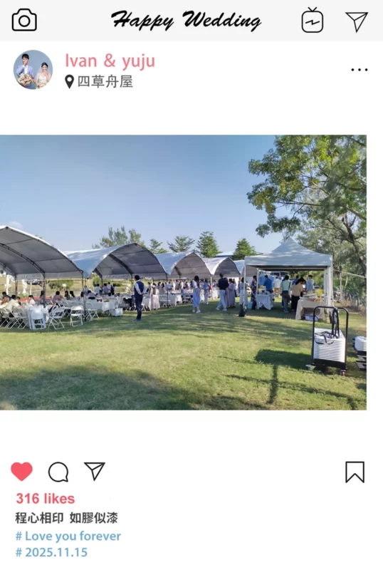 婚博展意外看到拍拍印,現場體驗感覺很適合我們的戶外婚禮,於是當下就下訂了。 婚禮前服務人員細心接洽,確認婚禮當