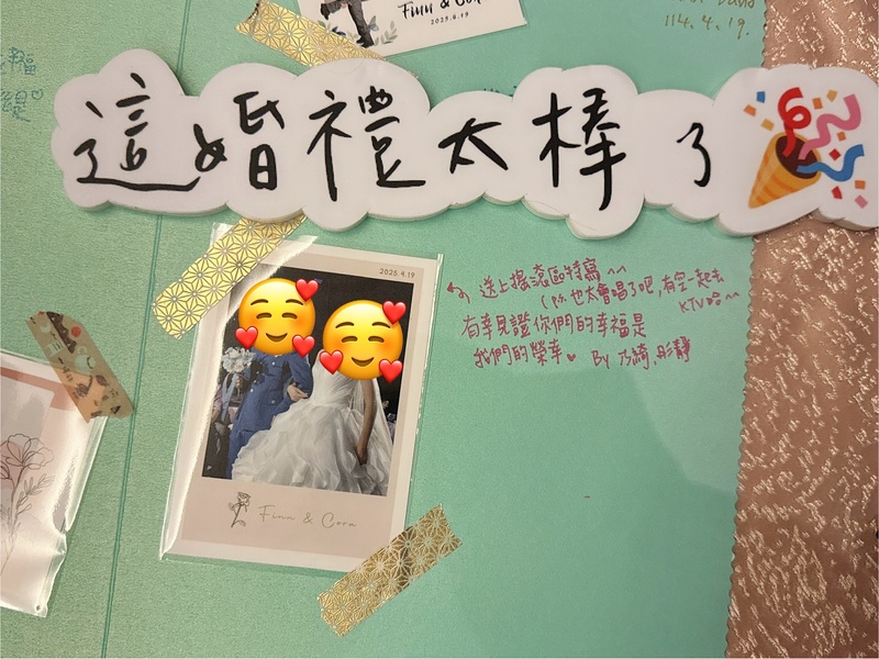 一開始在朋友的婚禮上用到拍拍印後,就希望自己的婚禮也有,真的完全不後悔!從下訂開始就覺得服務很貼心,加賴後的小