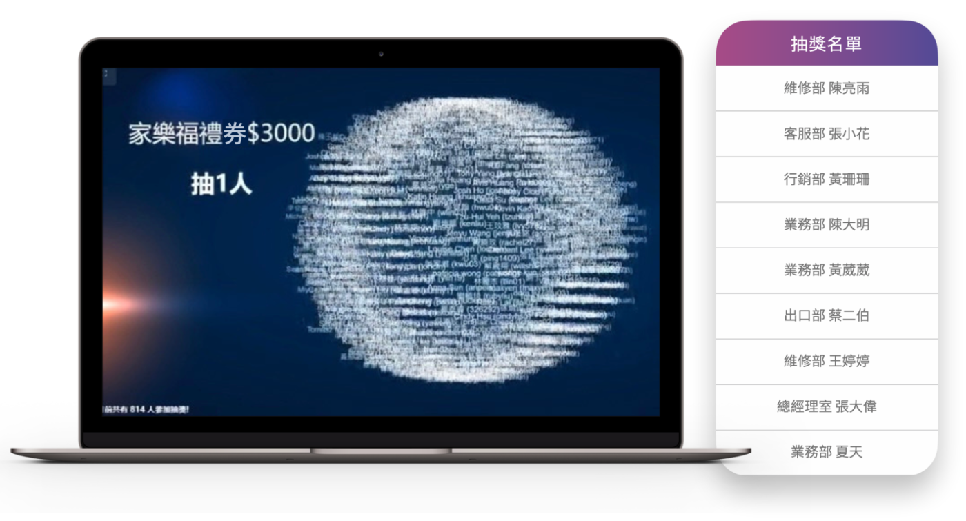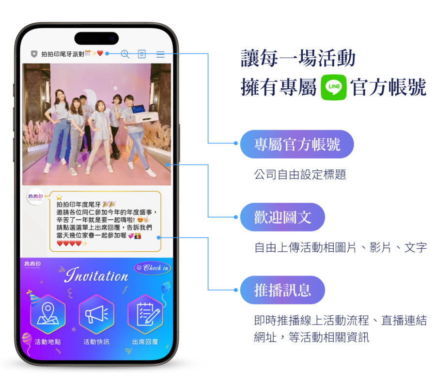 搭配拍拍印獨有中獎推播功能,中獎賓客即時通知