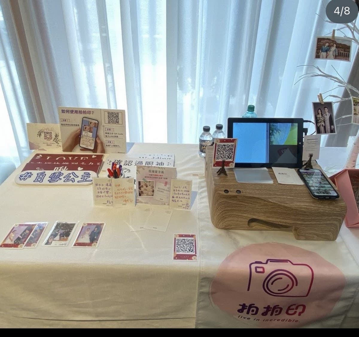 夏李府當新人希望婚禮現場佈置能多ㄧ點新人風格時,拍拍印除提供掛滿新人相片的小樹外,現場賓客可自取小樹上的相片,於相片背面留言送給新人;當婚宴會館沒有投影幕,拍拍印提供新人專屬line連結,讓賓客能直接操作手機介面,更方便欣賞婚紗照及影片;當新人苦惱婚禮缺少與賓客的互動遊戲,新人與賓客可利用拍拍印提供的新人專屬line連結完成抽獎等小活動,此外,賓客還可將現場拍攝的相片結合新人設計好的相框當場洗印,最棒的是,拍拍印的工作人員會隨時捕捉新人及賓客當日的畫面,並洗印相片作成新人的禮物。 謝謝拍拍印提供全方位的服務,賓客對於拍拍印都讚譽有加。相片是最美好的回憶,如果下次有活動需求,我一定還會選擇拍拍印🫶 #拍拍印 #心得分享 #分享主題