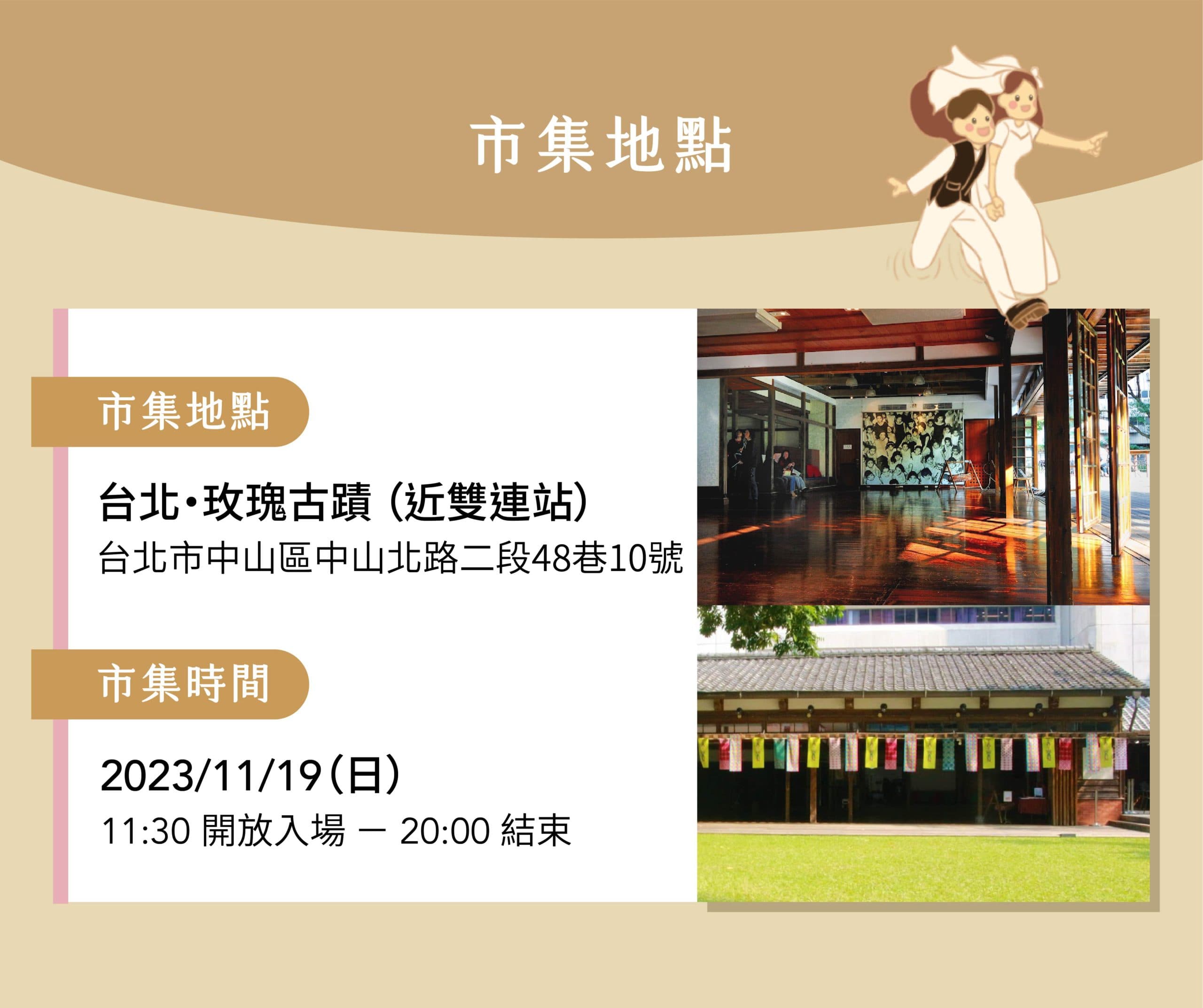 時間:2023.11.19(日)11:30開放入場-20:00 地址:台北・玫瑰古蹟-蔡瑞月舞蹈研究社 (近雙連站) (台北市中山區中山北路二段48巷10號) 👉🏻我要報名!!👈🏻