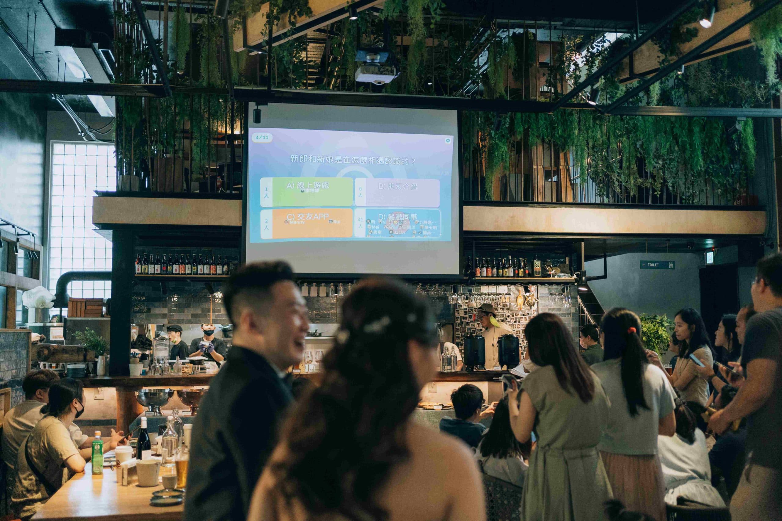 而拍拍印提供的「快問快答」遊戲,設定很簡單,介面也很好看,賓客只要用line就可以參加遊戲,婚禮當天效果超好