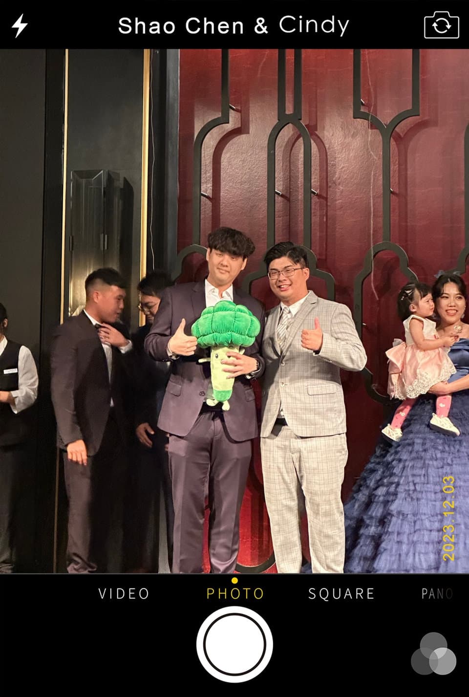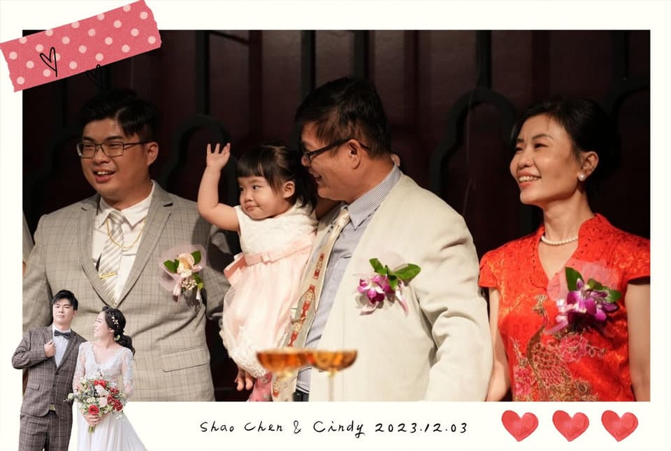 公公還以為我們請人家專門來印謝卡,想說都已經有謝卡了 為什麼還要印 哈哈 向他說明可以印自己的照片 背面還可以留言給我們的話 驚訝表示還有這種東西喔~~ 最好笑的是已經12點半了(原定開席時間12點),小秘書跑來詢問是否要開席了 但是還沒完全坐滿 只有5成 老公跑出去看 結果賓客都擠在機台前印照片 真的是嚇死 哈哈