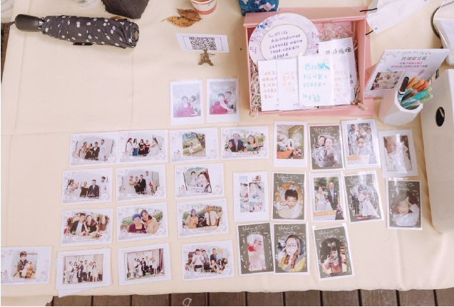 婚宴當天,我的流程是文定、證婚、午宴,那跟拍拍印負責人員討論後,決定讓賓客從 11:30-15:30使用拍拍印的主要服務-印製充滿回憶的拍立得。在婚禮之前,我很擔心大家會 不踴躍,因為我們的賓客大概只有50個,但現在,我真的很感謝拍拍印有提供VIP給幾位賓 客,讓他們可以無限印製,想當然爾,我選的一定是很愛拍照的賓客,不論男女老少,大家都 都很認真的卯起來印,這也讓我們覺得,還好有花這筆錢、還好我們找的是拍拍印❤️❤️ 我最最愛的環節,是快問快答。不用自己設計,只要調整題目、描述等設定,就可以做出屬 於我們獨一無二的題目,越有趣,賓客就越積極,看到每個人玩得那麼開心,我又在慶幸一 次,還好有拍拍印~很可惜的是,我和先生當天真的很忙,忙著拍類婚紗,幾乎沒有什麼時 間待在會場,所以都沒有看到當天來的拍拍印工作人員是誰、長什麼樣子,但在這邊,我要 很感謝他們在這短短的四小時內,都有儘量幫我和先生做側拍,還有最後給我們的留底照片 中,還放了一張手寫卡片,真的超溫馨、超用心。真的要跟每個客人大推啊~~