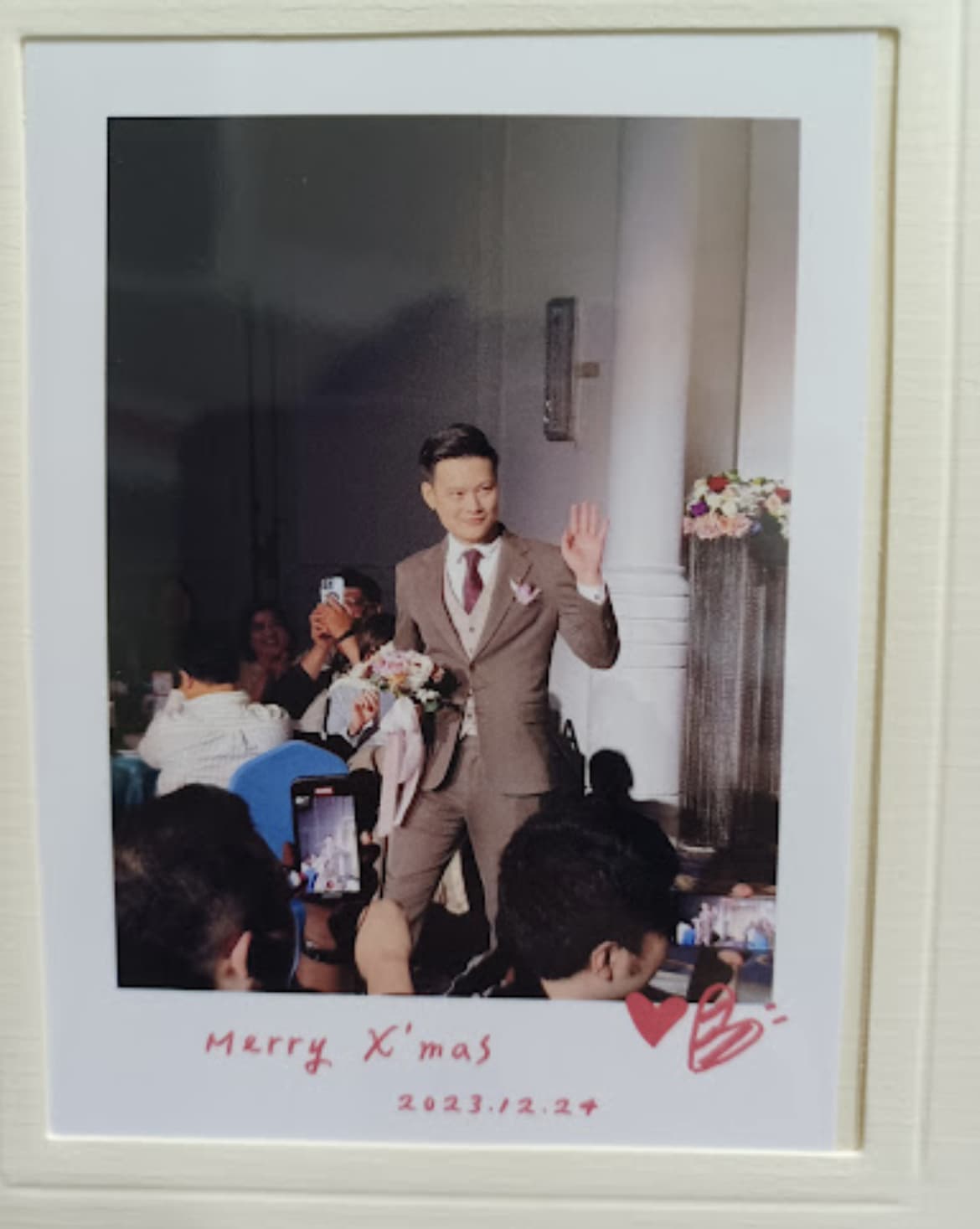 蔡柯府在準備婚禮過程中,一直想怎樣的禮物才是對賓客不浪費,因為看太多婚禮小物沒被拿走,覺得很可惜! 後來爬文發現到拍拍印,在婚紗展看實體跟相片質感後,發現相片質感真的不錯,馬上就下訂了! 因為我們桌數多,有9成是長輩,一直覺得沒人有興趣,結果!!!很踴躍呢!! 一大原因是有趣的道具~~ 各種造型眼鏡,髮窟,小標語,真的很好笑!! 還有,美顏燈~~ 現在沒有美顏燈不行了!! 女生大推說: 有打光有美顏就是讚!👍 大家是排隊拍照耶!馬上加第二個快點列印。 工作人員也cue我們過去拍照,可惜真的很忙自己真的都沒玩到..... 事後靠著電子檔才發現原來大家都有玩~🤣 如果婚禮活動不知道要做什麼,完全推薦拍拍印,光拍貼機隨印隨拍就很猛了,line操作簡單,還有工作人員精美的側拍記錄,還有附贈小遊戲! 完全大加分!!!!!