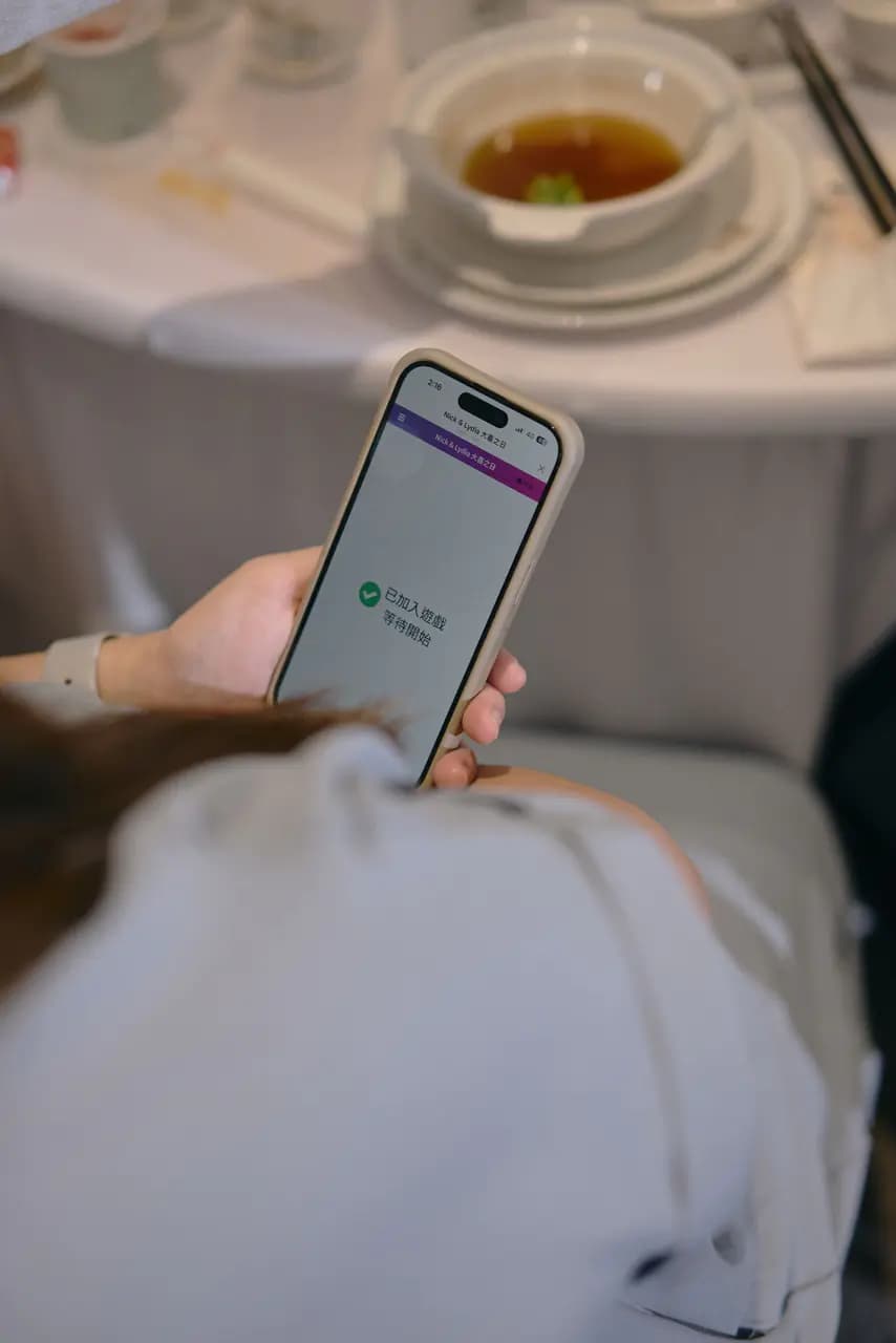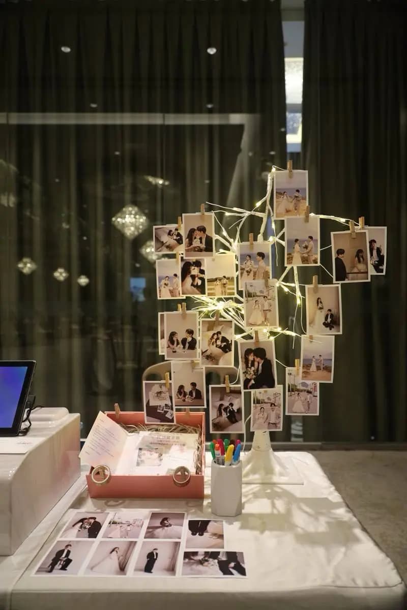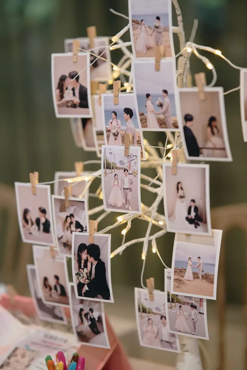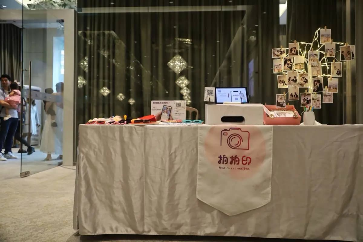 婚宴日期:2025/08/17 宴客地點:晶宴-日光香頌 當初我在跟晶宴第一次接洽了解方案時,接待人員就有提到他們有跟拍拍印合作,方案相對來說會比自己找還來得優惠,加上自己也有在朋友婚禮上體驗過其他家即拍即印的服務,整體婚禮感受上大大提升,其中拍拍印最打中我的一點是他有快問快答遊戲,以及抽獎活動!多了這些項目的婚禮一定會更加有趣,於是我跟場地下訂之後,二話不說也一併加購了拍拍印 ♪~(´ε` ) 下定拍拍印後,沒多久就拿到了我們新人專屬的官方Line,也有專屬的一位拍拍印工作人員跟我們後續討論後台操作。原則上在婚禮前兩個月再開始籌備都還來的及,後台操作也都淺顯易懂,前期只要先設定好賓客加入的歡迎提詞、婚禮地點提醒及相關資訊,基本上就完成一半了~ 還有一個線上婚紗藝廊這個功能非常酷,賓客可以在加入我們官方Line之後,從中看到我們的婚紗照,一同分享這份喜悅,當天工作人員也會把有上傳的婚紗照洗出來,佈置成相片樹,非常可愛(〃ω〃)