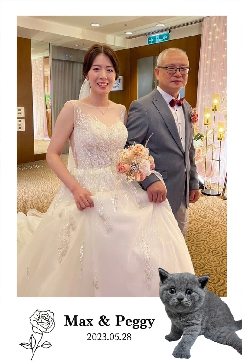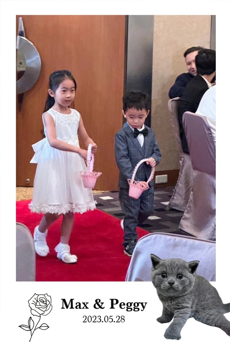 婚禮前還能自製邊框,我們特別選擇了我們家養的貓兒子做邊框icon,賓客還有我們請來的小花童都很喜歡😂😂
