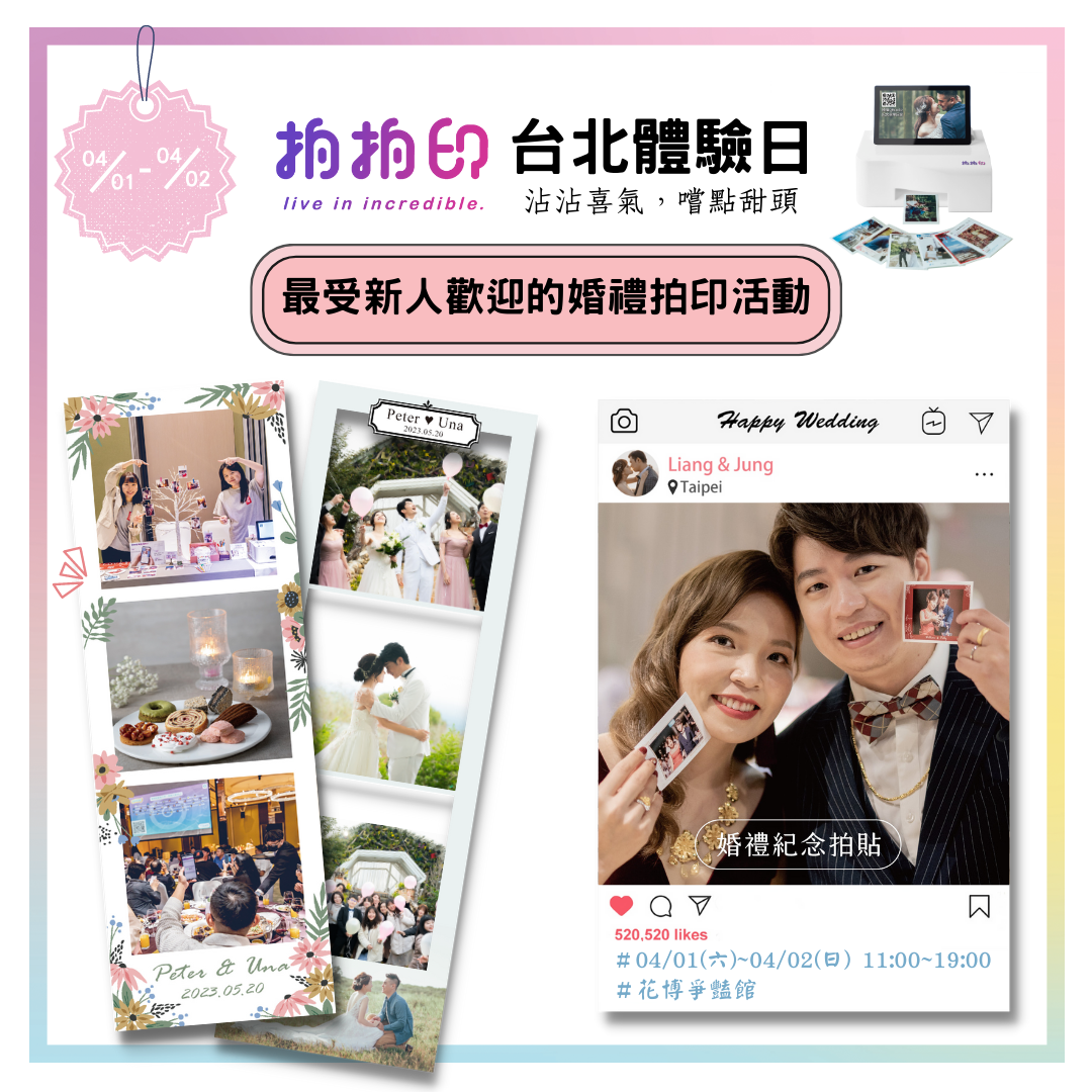 拍拍印[ux_text text_align="left"] 🎉 🎉 沾沾喜氣·嚐點甜頭-體驗日_台北站加開場 🎉 🎉 因應3/18台北體驗日大爆滿,我們決定加開台北體驗日場次啦~ 除了拍印體驗及互動遊戲抽好禮外,還有時下最流行的「韓式三連拍」,讓您免探店就能當韓妞❤️ 歡迎各位備婚中的準新人們,4/1(六)~4/2(日)與我們一起嗨翻體驗日🥳